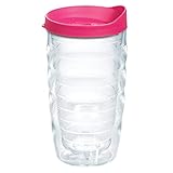 Tervis Clear & Colorful Lidded Made in USA Double Walled Insulated Tumbler Travel Cup Keeps Drinks Cold & Hot, 10oz Wavy, Fuchsia Lid
