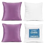 Throw Pillow Inserts Pack of 2 with Velvet Soft Solid Decorative Square Throw Pillow Covers Set for Sofa Couch Car Bedroom, 22X22 Throw Pillows Inserts with 20×20 Washable Cushion Covers, Lavender