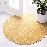 Unique Loom Trellis Frieze Collection Area Rug – Rounded (3′ Round, Yellow/ Ivory)