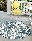 Unique Loom Outdoor Botanical Collection Area Rug – Palm (10′ Round Teal/Ivory)