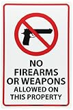 NMC M452R Security Sign, Legend “NO FIREARMS OR WEAPONS ALLOWED ON THIS PROPERTY”, 12″ Length x 18″ Height, Rigid Polystyrene Plastic, Red/Black on White