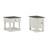 Ashley Signature Design French Country Square & Chair Side End Tables, White & Gray, 25″ x 25″ x 25″ (Square), 16″ x 24″ x 23″ (Chairside)