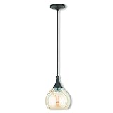 Livex Lighting 40615-92 Contemporary Modern One Light Art Glass Mini Pendants Collection Dark Finish, English Bronze