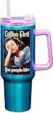 Spoontiques Stainless Steel Travel Mug, 40oz – Double Wall Insulation, Sturdy Handle, Sliding Lock Travel Lid – Coffee