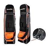 Powerbilt TPS Deluxe Wheeled Golf Travel Cover, Black/Gray/Orange Padded Golf Club Travel Bags for Airlines with Wheels