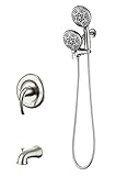 AUKTOPT Tub Shower Faucet Set with Valve, High Pressure 3-way Water Diverter Shower Trim Kit 48-Function Brushed