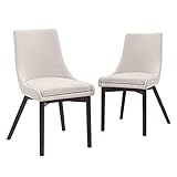 CangLong Upholstered Fabric Chairs and Solid Wood Legs for Kitchen Dining Bedroom Living Room, Set of 2, Beige 1
