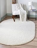 Unique Loom Solid Shag Collection Area Rug (5′ 3″ x 8′ Oval, Snow White)
