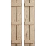 Ekena Millwork 11″W x 80″H Rustic Two Board Joined Board-n-Batten Hand Hewn Faux Wood Shutters (Per Pair), Primed Tan