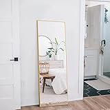 KIAYACI Full Length Floor Mirror with Stand 51″x16″ Large Wall Mounted Full Body Mirror Horizontal/Vertical Bedroom Mirror Dressing Mirror Aluminum Alloy Frame Gold
