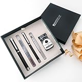 Monteverde USA Strata Fountain Pen, Ball Pen Set Black | Medium Nib | Free Gel Refill, Ink Bottle & 3 Free Cartridges