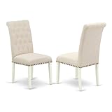 East West Furniture BRP2T02 Bremond Parsons Dining Chairs – Button Tufted Nailhead Trim Light Beige Linen Fabric Upholstered Chairs, Set of 2, Linen White