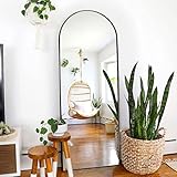 MIRUO Arched Full Length Mirror, 65″ x 22″ Aluminum Alloy Frame Floor Mirror with Stand, Large Bedroom Mirror Dressing Mirror, Free Standing or Leaning Against Wall, Black