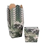 Restaurantware Bio Tek 3.6 x 3 x 3.3 Inch Food Containers 200 Noodle Takeaway Boxes – Disposable Sturdy Camouflage Paper 16 Ounce Take Out Boxes Rectangle For Hot Or Cold Foods