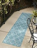 Unique Loom Trellis Collection Area Rug-Lattice Design, Moroccan Inspired for Indoor/Outdoor DΓ©cor, 2 ft x 8 ft Runner, Aquamarine/Gray