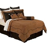 H HIEND ACCENTS Paseo Road Barbwire Western Bedding 5 Piece Twin Comforter Set, Tan Faux Leather Rustic Cabin Theme Bed Set, Warm Winter Comforter Sets with Bed Skirt, Sham, Decorative Pillows