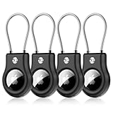 FlyCoco Compatible with Apple AirTag Secure Holder, 4 Pack AirTag Lock Case Keychain Holder with Wire Cable, Anti-Lost Protective Case with Keyring for Luggage Key Backpack Dog Collar, Black