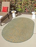 Unique Loom Jill Zarin Outdoor Collection Area Rug – Cape Town (5′ 3” x 8′ Oval, Yellow and Aqua/ Light Blue)