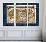 Wexford Home Blueprint of The World 3 Panel Gallery Wrapped Canvas Wall Art