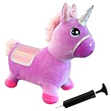 Plush Purple and Pink Unicorn Bounce & Ride-on Inflatable Hopper Toddler Toy with Pump