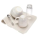Clorox KeptClean Interlocking Non-Slip Dish Drying Mat – Flexible, Foldable, Durable, Quick-Dry Mat, Interlocking Panels for Various Drying Elevations, Folds Compact for Storage – Almond Cream
