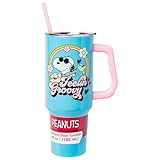 Silver Buffalo Peanuts Featuring Snoopy and Woodstock Feelin’ Groovy Stainless Steel Tumbler with Handle and Straw, Fits in Standard Cup Holder, 40 Ounces