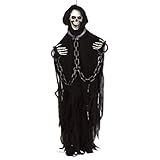 Beistle Skeleton with Chains Creepy Creature Motion-Activated Halloween Decoration with Flashing LED Lights and Spooky Laugh, Poseable Arms, Indoor Haunted House Prop, 6β, 6′, Black/Off White/Gray