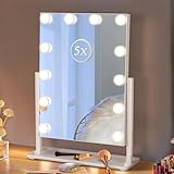 HEYAXA Vanity Mirror with Lights, Makeup Mirror with 12 Dimmable Bulbs 3 Color Lighting Modes Detachable 5X Magnification Mirror,360°Rotation, White.