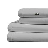 Lacoste 100% Cotton Percale 4-Piece Sheet Set – Cool, Crisp, Matte, and Durable, Oeko-Tex Certified – Solid, Micro Chip, King