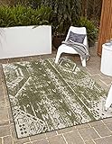 Unique Loom Outdoor Bohemian Collection Area Rug – Anthro (7′ 10″ x 10′ Rectangle, Green/ Ivory)