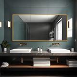NeuType Full Length Mirror Standing, Hanging or Leaning Against Wall – Large Rectangle Bedroom Floor Dressing Wall-Mounted Mirror, Aluminum Alloy Thin Frame, Gold, 63″x20″