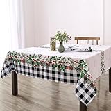 Elrene Home Fashions Holly Farmhouse Charm Buffalo Check Holiday/Christmas Fabric Wrinkle Resistant Rectangle Dining Tablecloth, 60″x102″