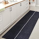 JONATHAN Y WSH117A-28 Linja Solid Centre Stripe Machine-Washable Indoor Runner Rug, Farmhouse Bohemian Vintage Easy -Cleaning,Bedroom,Kitchen,Living Room,Non Shedding, Navy/Gray, 2 X 8