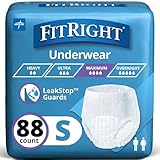 Medline Protection Plus Super Protective Adult Underwear, Small (20-28 Inch Waist),Absorbency for Incontinence, 88 Count (4 Packs of 22)