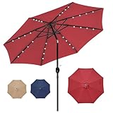 HealSmart 9′ Solar Umbrella 32 LED Lighted Patio Umbrella with Push Button Tilt/Crank, Outdoor Table Umbrella for Garden, Deck, Backyard and Pool, Red