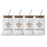 The Memory Company | Licensed NFL 4-Pack Can Shaped Glasses with Bamboo Lid,New Orleans Saints