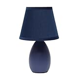 Simple Designs LT1197-BLU 9.45″ Chic and Sleek Oblong Mini Oval Ceramic Table Lamp with Matching Shade, for Living Room, Bedroom, Office, Blue
