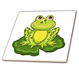 3D Rose Cute Green Frog Sitting on Lily Pad Ceramic Tile, Multicolor