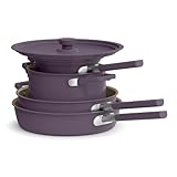 bella 9 Piece Ceramic Nonstick Cookware Set, Fits-anywhereâ„¢ Kitchenware w EverGoodâ„¢ Coating, Dishwasher & Oven Safe, All Stovetops Compatible, Stackable Design, Cool Touch Handles, Plum