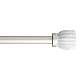 TOWN & COUNTRY LUXE Marbled Flute Single Indoor Curtain Rod and Finial Set, Natural Marble Stone Look, Easy Install Wall Mount, Matte Silver, Adjustable 66”-120”