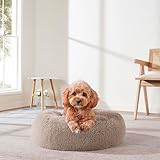 Dog & Cat Bed: Round Faux Fur Pet Bed – Plush, Cozy, & Calming Donut Bed for Medium Pets – Soft & Comfortable Sleeping Cushion for Napping & Lounging, 23″ Round, Taupe