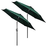 HealSmart 7.5ft Patio Umbrella with Push Button Tilt/Crank, Outdoor Table Market Yard Umbrella, 6 Sturdy Ribs for Garden, Deck, Backyard, Pool, 2 Pack, Green