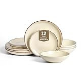 Earth and Clay Heath 12-Piece Dinnerware Set Stoneware, Plates and Bowls Set, Dishwasher and Microwave Safe, Dish Set for 4, Coffee