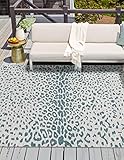 Unique Loom Outdoor Safari Collection Area Rug – Samburu (10′ Square, Teal/ Gray)