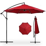 VECELO 10ft Offset Patio Umbrella, Cantilever Umbrella, Hanging Outdoor Umbrellas with 8 Ribs, Market Umbrella w/UV Protection Waterproof for Market/Backyard/Pool/Garden/Lawn, Handy Crank&Cross Base