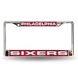 Rico Industries NBA Philadelphia 76ers Laser Cut Inlaid Standard Chrome License Plate Frame, 6″ x 12.25″, Chrome