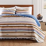 Greenland Home Luxury Microfiber Quilt Set, Ultra-Soft, Silken Brushed, Lightweight & Breathable, Wrinkle-Resistant, Extreme Value Reversible Bedding, 2-Piece Twin/XL, Painted Desert Sapphire