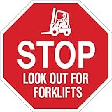 Brady 124510 Traffic Control Sign, Legend “Stop Look Out for Forklifts”, 18″ Height, 18″ Width, White on Red
