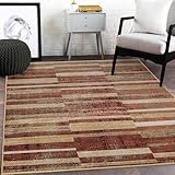 Superior Indoor Area Rug, Jute Backing, Soft Modern Rugs for Dining, Family, Kitchen Floors, Office Floor Cover, Plush Striped Rugs, Radko Collection, 5′ x 8′, Rust/Cream