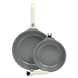 Sur La Table Kitchen Essentials Craft Studio Cast Aluminum Detachable Handle 8 and 10 Inch Skillet Fry Pan Set w/PFA Free Ceramic Non Stick Removable Handle Induction Safe – Eggshell White